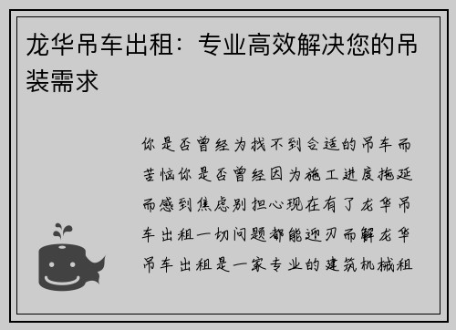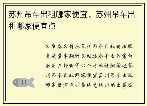 标题:雇佣吊车价格查询及比较:找到最合适的解决方案 简介:在需要吊车服务的时候,了解价格并进行比较是非常重要的。本文将为您介绍如何进行雇佣吊车价格查询及比较,并帮助您找到最适合自己需求的解决方案。 1. 了解吊车租赁市场 自然段1:吊车租赁市场的竞争日益激烈,各种吊车类型和规格的选择众多。在查询和比...